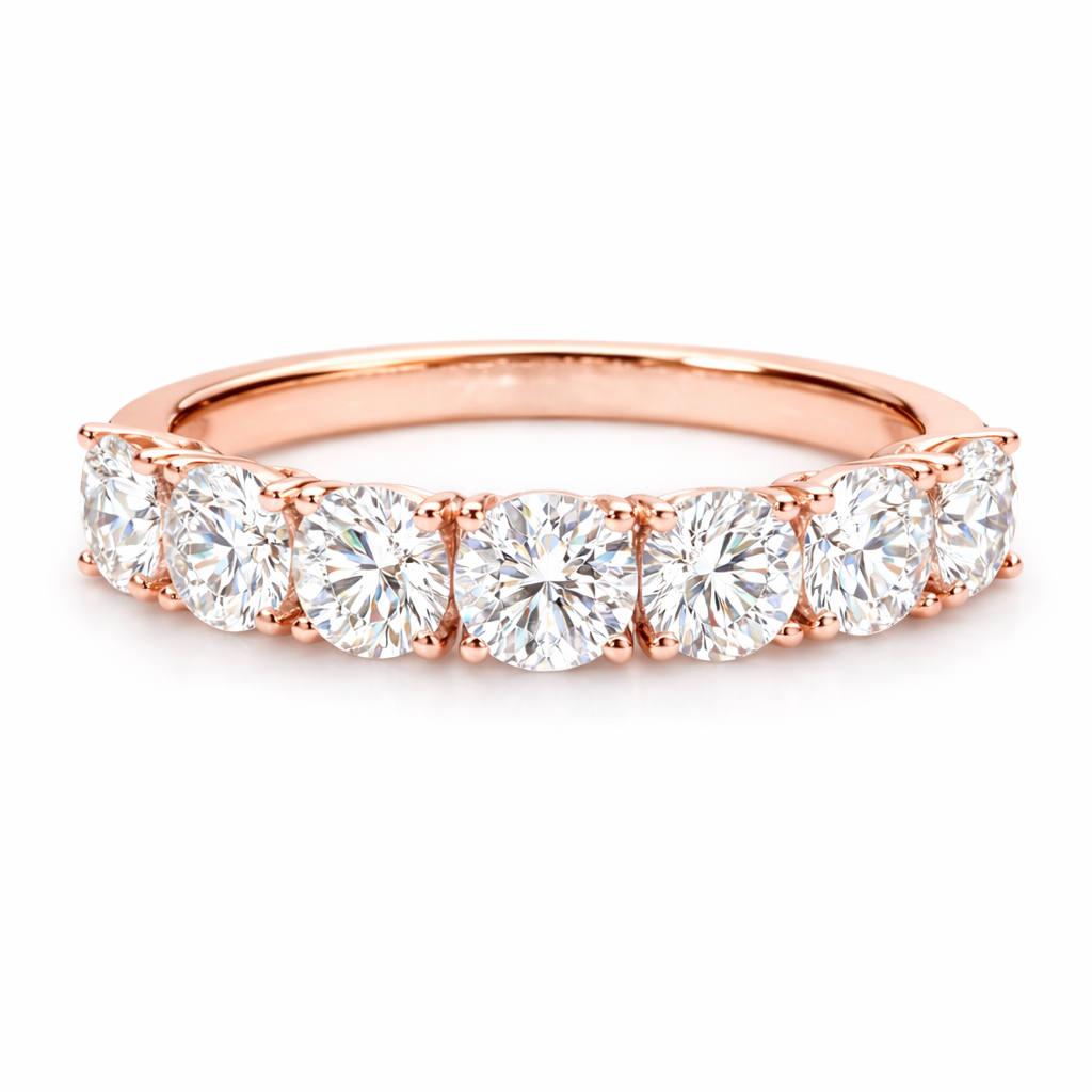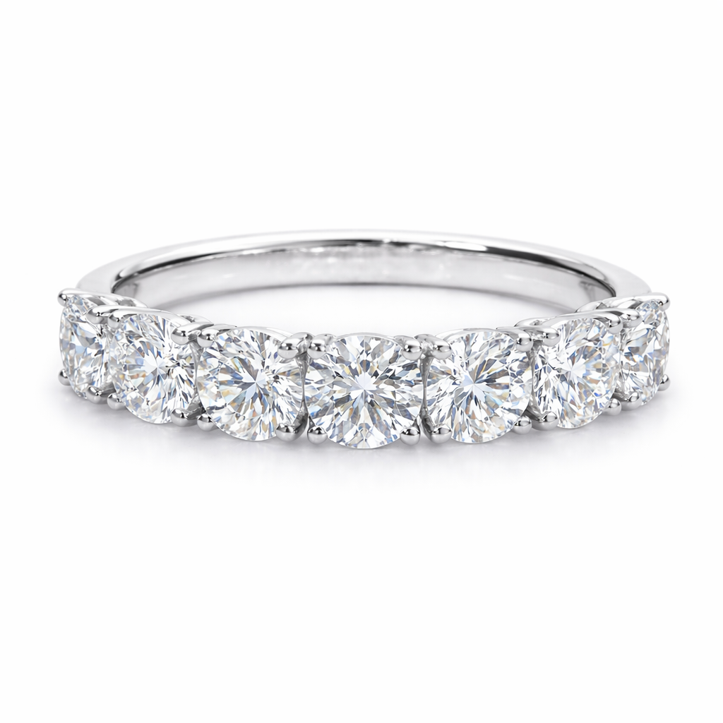 A refined symbol of balance and timeless elegance, this 7-stone classic eternity band features a graceful row of brilliant diamonds set across the upper half of the ring. This setting enhances comfort and wearability, while the perfectly matched stones deliver luminous sparkle with classic sophistication.