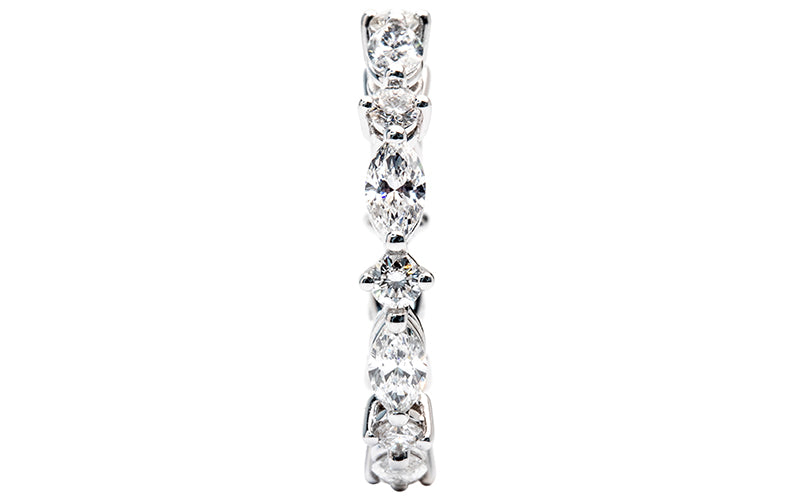 Magnificent eternity band features a unique combination of marquise and round diamond cuts, creating a distinctly romantic design. The band is crafted in 18K white gold. Each piece is expertly made by D4U Jewels’ handcrafted made in Italy, showcasing meticulous attention to detail. With a total weight of 1.71 carats, this high jewelry piece is a breathtaking symbol of love and commitment.
